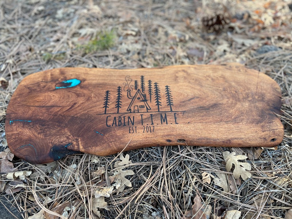 We had a friend reach out to us last week about making a cutting board for her husband’s birthday. This adorable family has a cabin about 2 hours north of their house that is their own private getaway. The even have a logo for their cabin – which is where we come in.