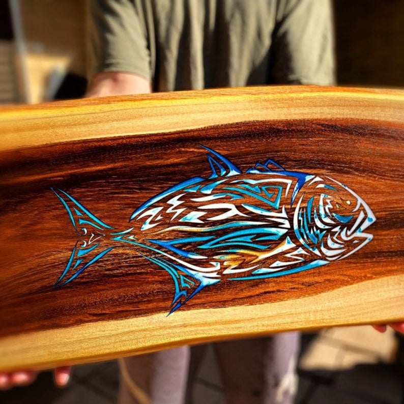 Liveedge Indian Rosewood Board with Bluefin Trevally (22″x11″) – $119