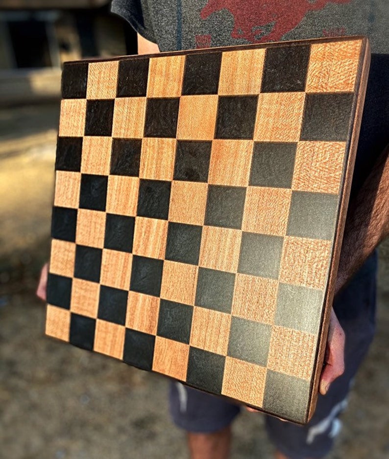 Leopardwood and Black Epoxy Checkerboard (16″x16″) – $189