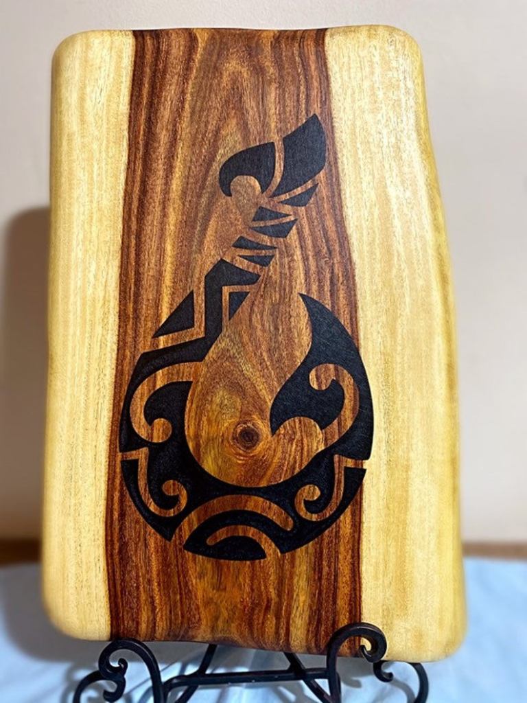 Live edge Indian Rosewood Board with Hawaiian Hook (16″x11″) – $109