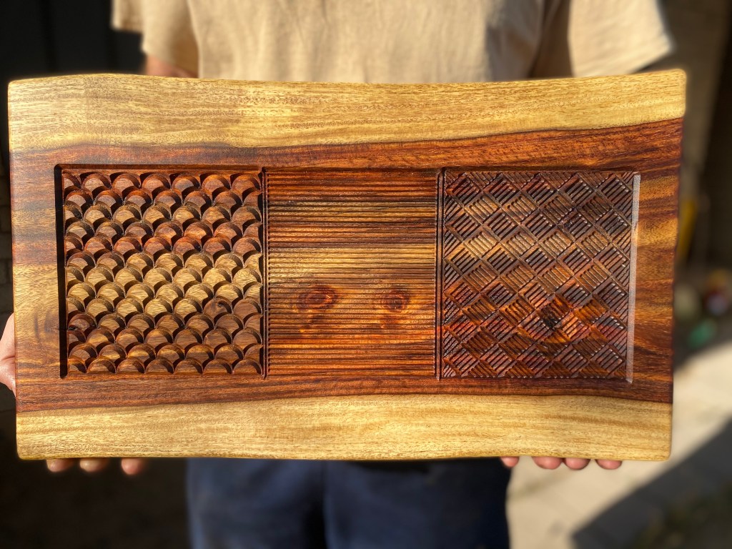 Live edge Carob Tree of Life Cutting Board (17″x12″) – $119